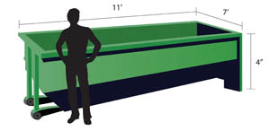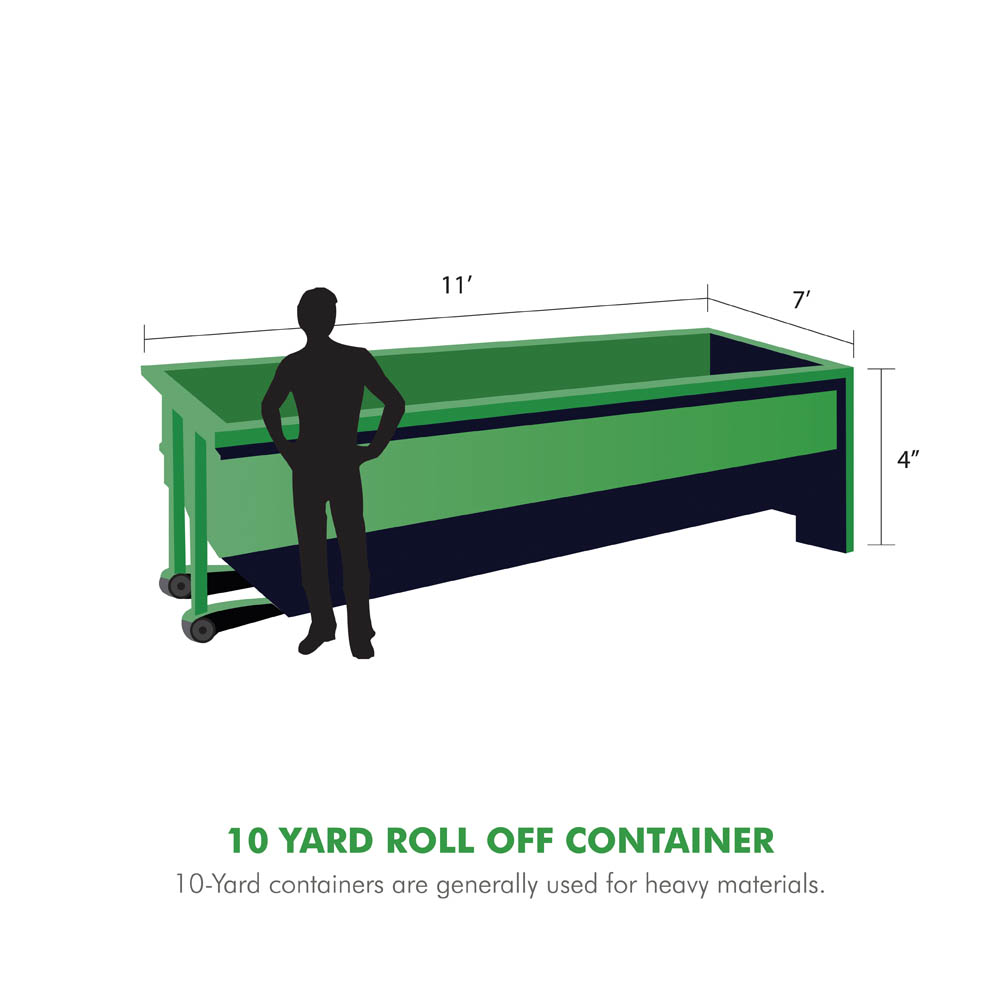 10-Yard containers are generally used for heavy materials such as ceramic tile, shingles, and demolition debris.