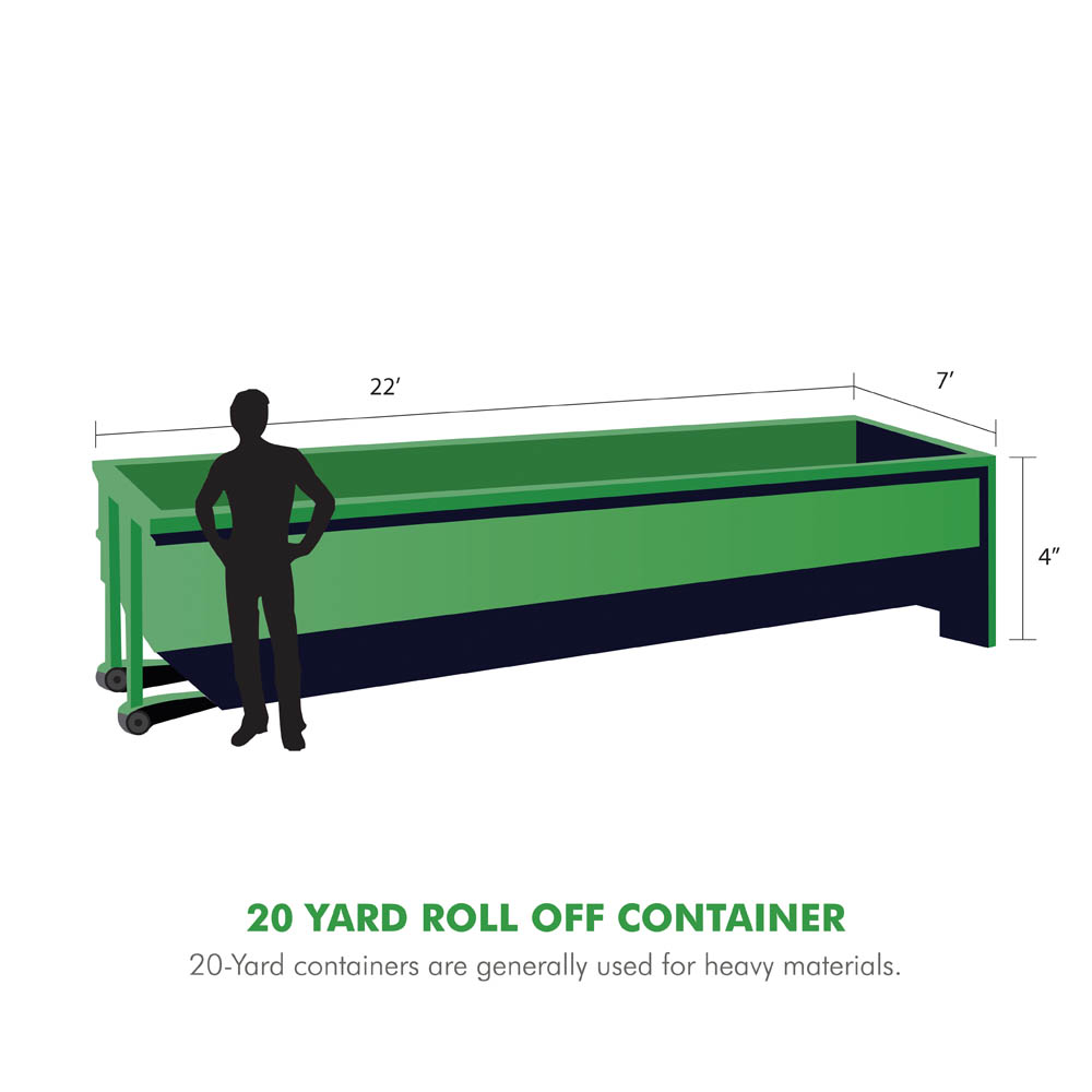 20-Yard containers are generally used for heavy materials such as ceramic tile, shingles, and demolition debris.
