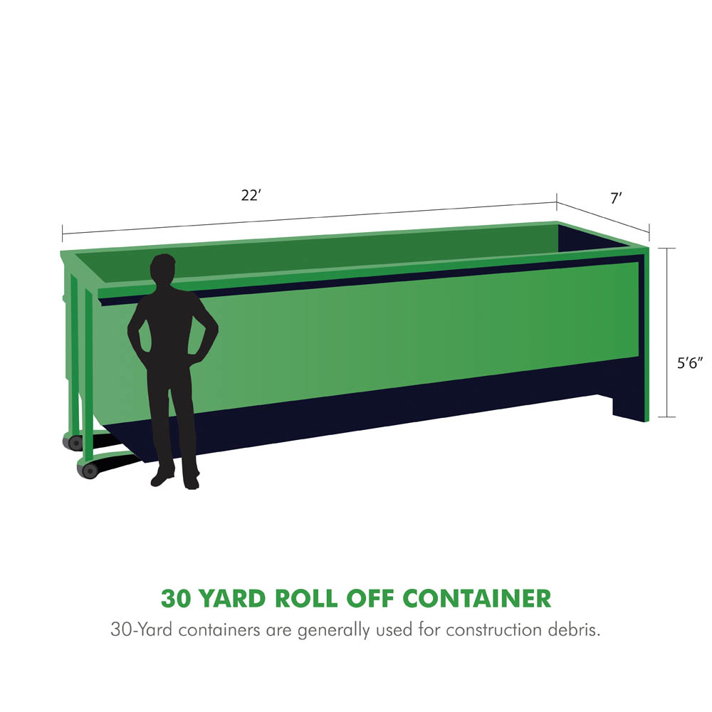 30-Yard containers are generally used for construction debris such as wood, metal, cardboard, drywall, and other various assorted materials.